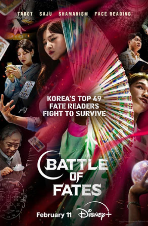 Battle of Fates (2026) สังเวียนเซียนทํานาย เรียลลิตี้เกมสุดเดือดที่พายอดนักพยากรณ์ระดับแถวหน้าของเกาหลีถึง 49 คน ทั้งร่างทรง, หมอดูไพ่ทาโรต์, การดูโหงวเฮ้งและดูลายเท้า, นักทำนายชะตาซาจู, และศาสตร์การดูดวงแขนงต่าง ๆ มาประชันกันผ่านภารกิจสุดหินที่จะท้าทายความแม่นขั้นสุดเพื่อพิสูจน์ว่าใครจะได้ครอบครองตำแหน่งที่สุดของนักพยากรณ์เกาหลี
